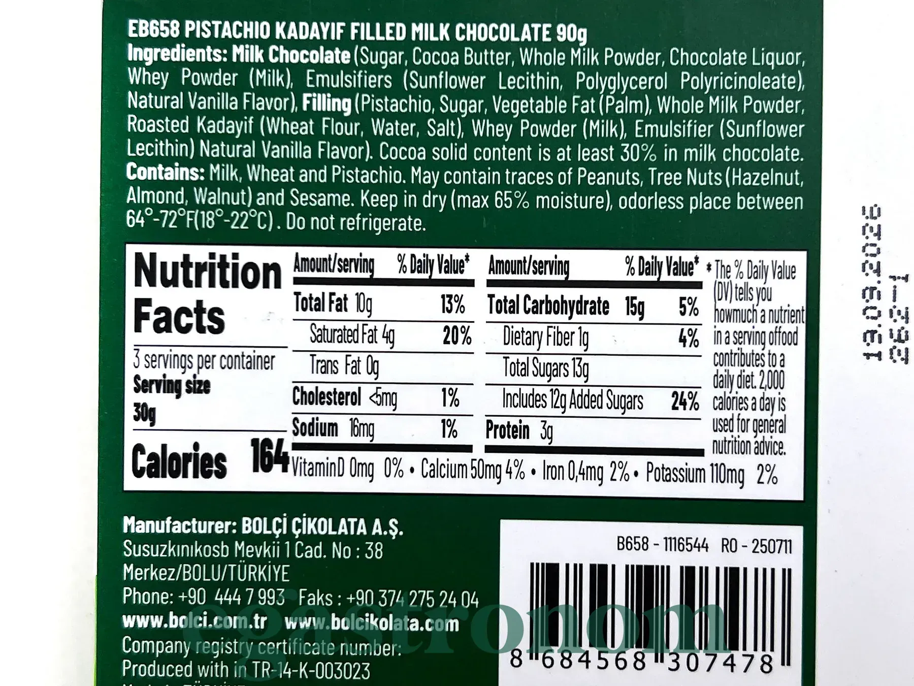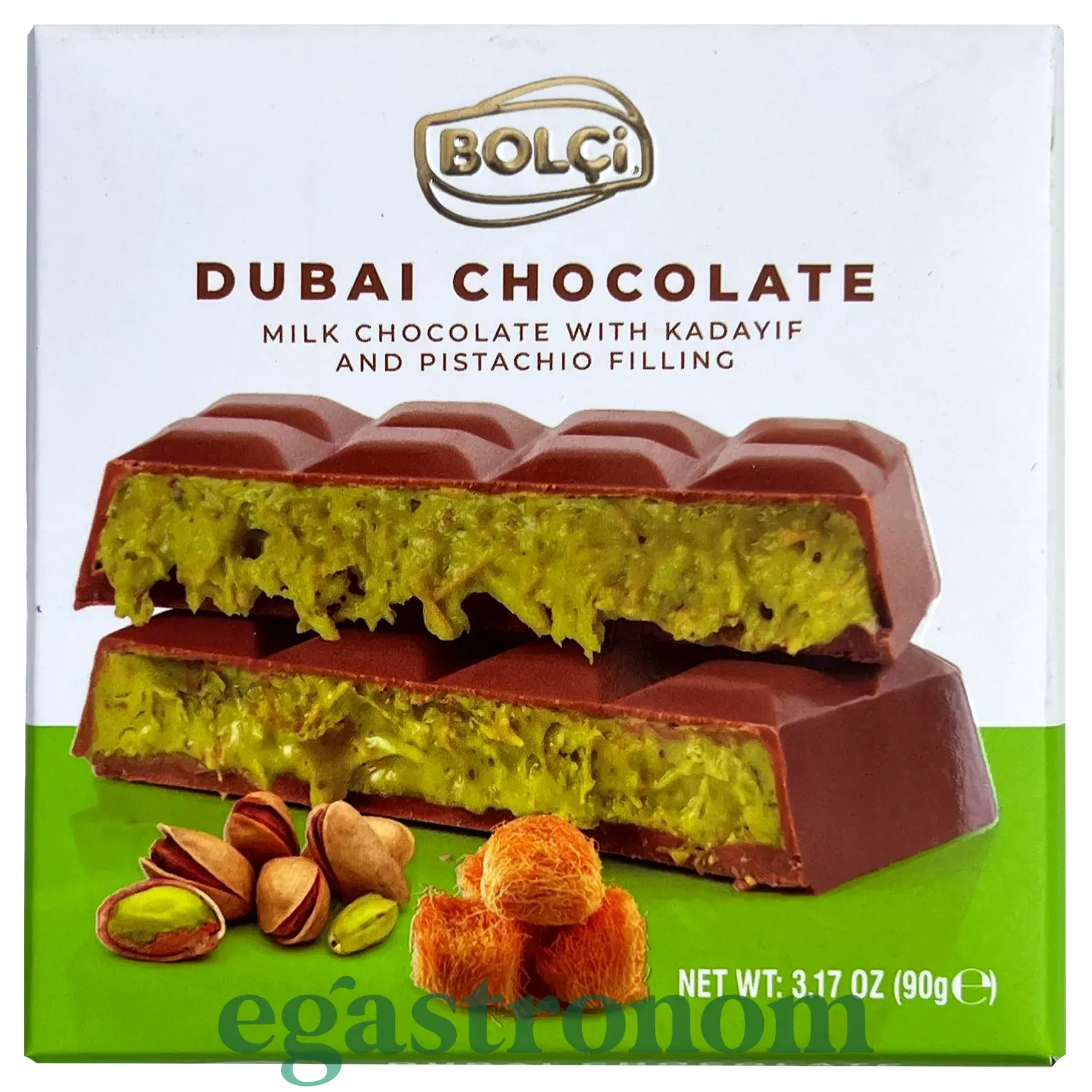 Шоколад Дубайський молочний з фісташкою Болчі Bolci 90g 6шт/пач 36пач/ящ