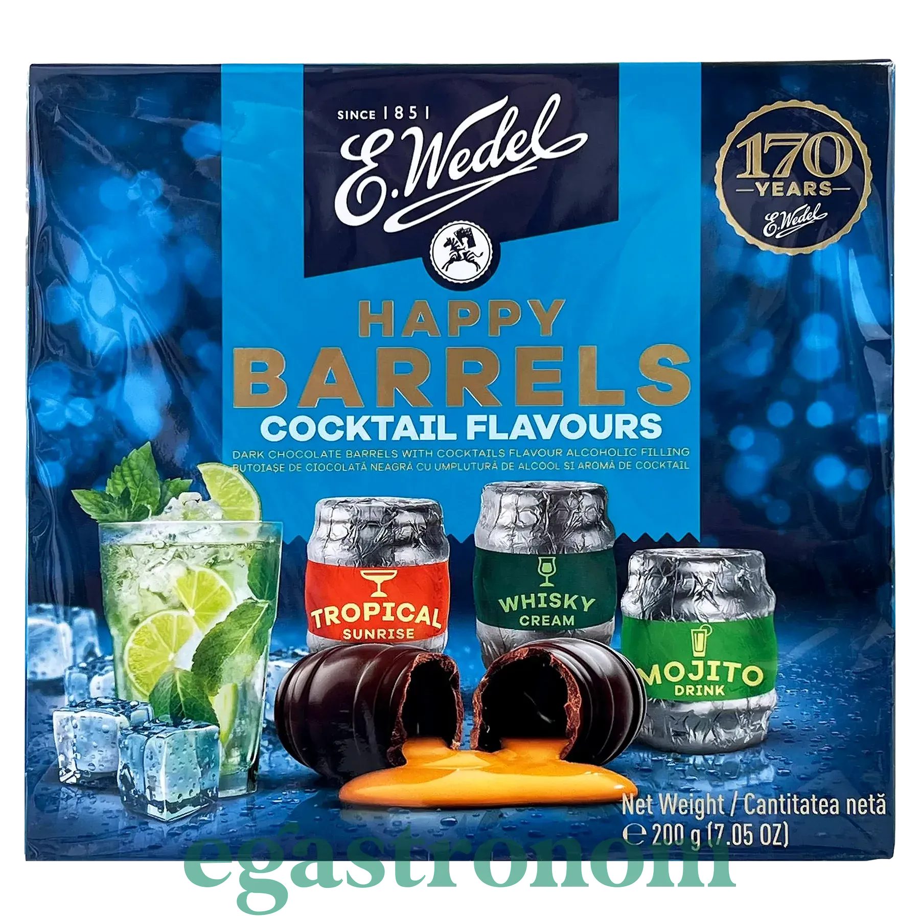 Цукерки шоколадні з коктельним смаком щасливі бочки Е. Ведель E. Wedel happy сocktail 200g 10шт/ящ