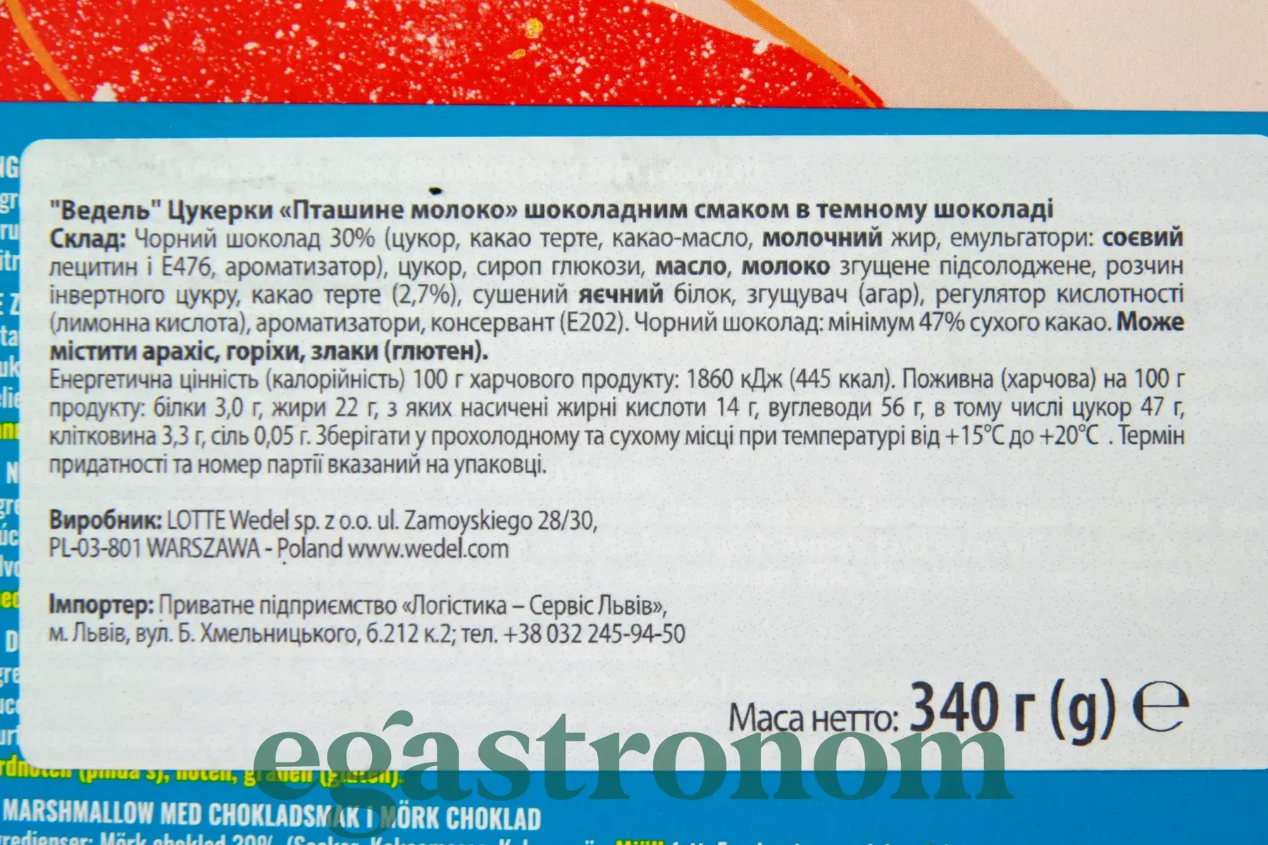 Цукерки пташине молоко чорний шоколад Е. Ведель E. Wedel chocolate flavour 340g 18шт/ящ