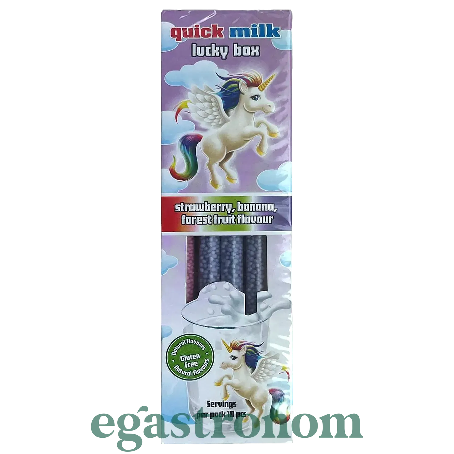 Трубочки для молока єдиноріг асорті Квік Мілк Quick Milk lucky box 60g 12шт/пач 6пач/ящ
