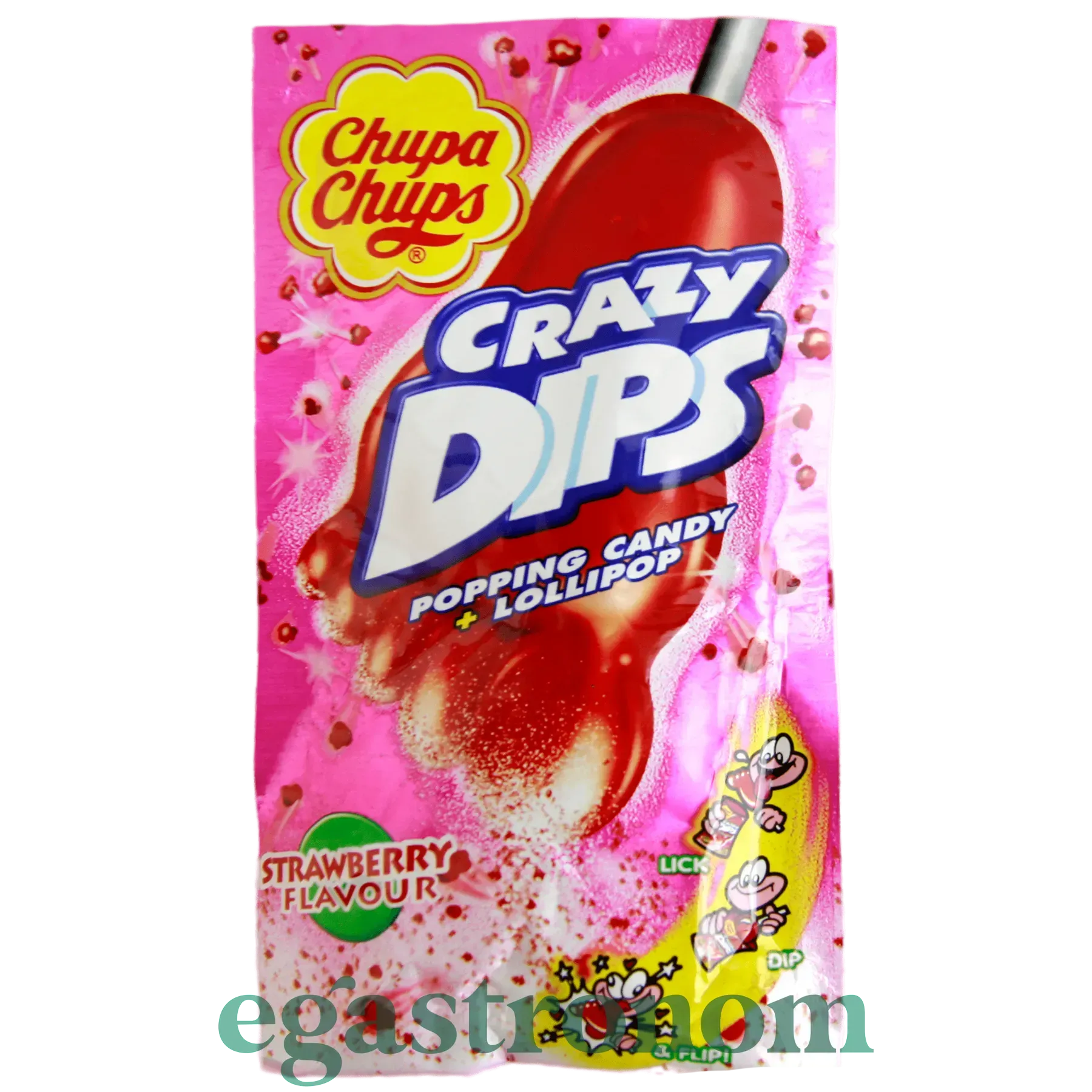 Льодяники на паличці полуниця Чупа чупс Chupa chups Crazy Dips strawberry 14g 24шт/пач
