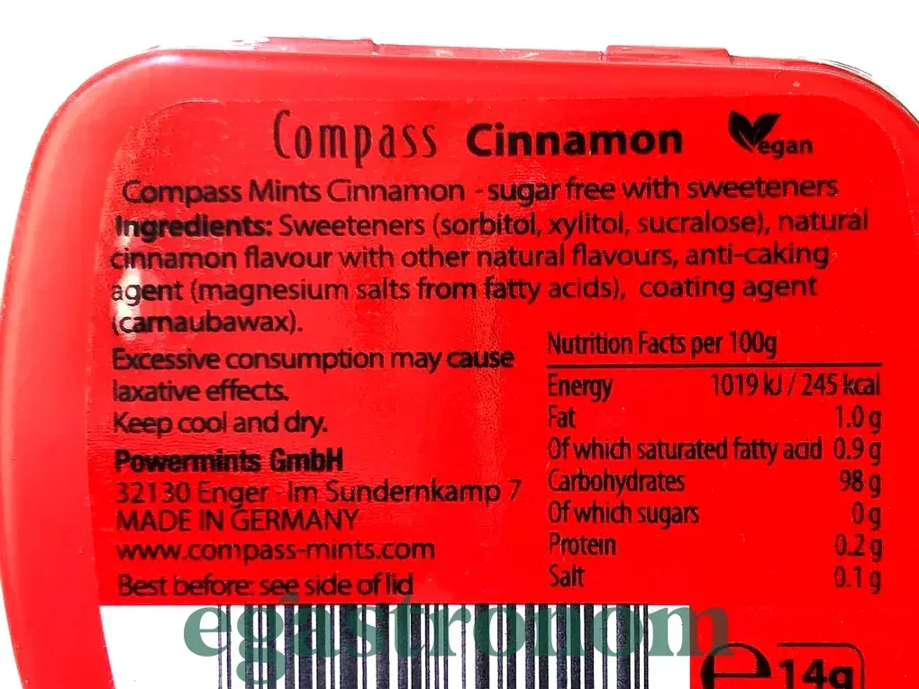 Компанія «Compass Pepper» успішно займає лідируючі позиції на світовому ринку, тому, роблячи свій вибір у бік їх продукції, Ви точно не помилитеся. На кондитерській фабриці використовуються виключно природні, високоякісні інгредієнти. Приємний аромат м'яти та кориці так і буде вабити Вас спробувати цей льодяник. Завдяки невеликій баночці, Ви завжди можете носити з собою улюблені цукерки. Кондитерська фабрика знаходиться в Австрії. ТОП запити