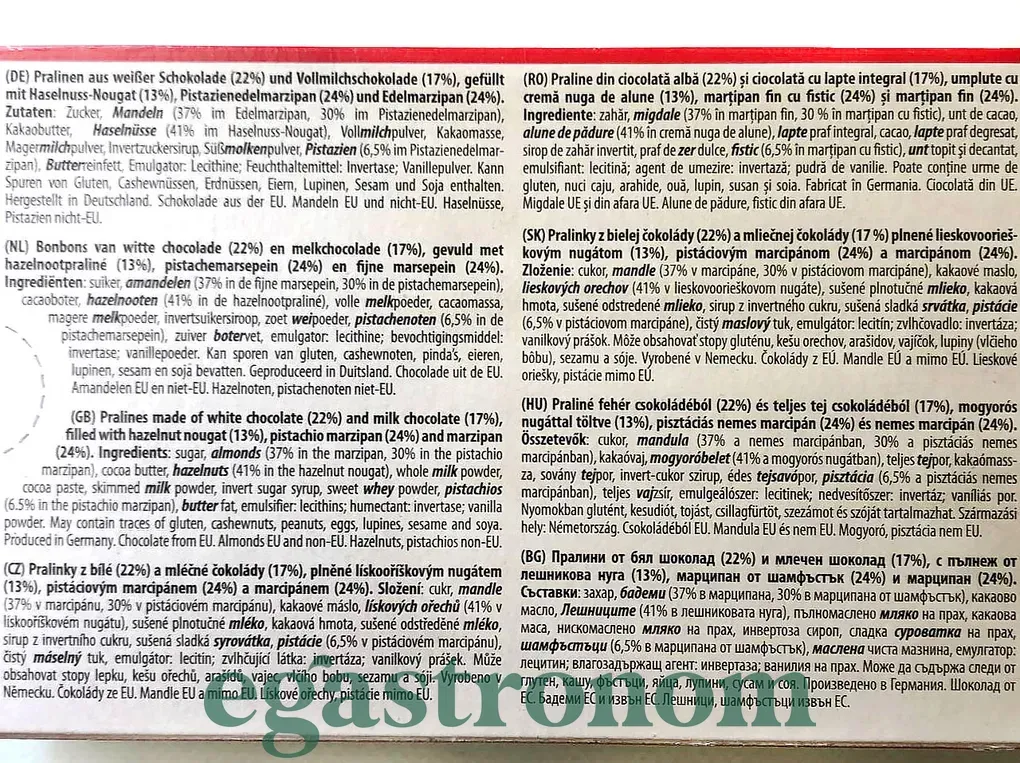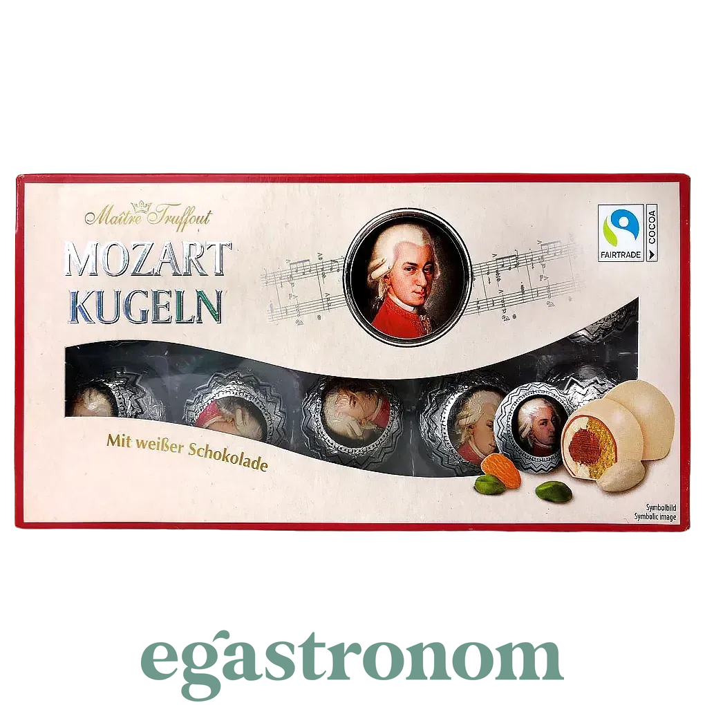 Цукерки в білому шоколаді Mozart — вишукані солодощі, створені за класичною австрійською рецептурою. Поєднують ніжний білий шоколад, фісташковий марципан та горіхове праліне, утворюючи багатогранний смак. Кожна цукерка індивідуально запакована для збереження свіжості. ТОП запити Тофу Магазин європейських товарів Ціни на підгузники Напої Плавлений сир купити Купити шоколад Засіб для виведення плям