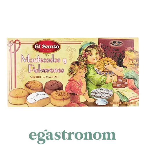 Іспанське печиво El Santo Surtido Mantecados y Polvorones - це дуже смачне асорті пісочного печива з мигдальним борошном. Традиційний і старовинний рецепт приготування створює унікальне печиво зі смаком мигдалю, шоколаду, апельсина, лимона, кориці і кокоса. Це печиво є головною і улюбленою солодкістю іспанців. Смачне і ароматне печиво добре доповнить чашечку міцної кави або чаю. Печиво досить сухе і розсипчасте. Ніжне печиво розсипається у роті і тане з першої секунди. Асорті сподобається всім любителям смачних солодощів - і дорослим, і дітям. ТОП запити Енергетичні напої купити Плавлений сир купити Пральні порошки ціни Ціна на сир фета Лазур сир Купити мило господарське Шоколад вартість