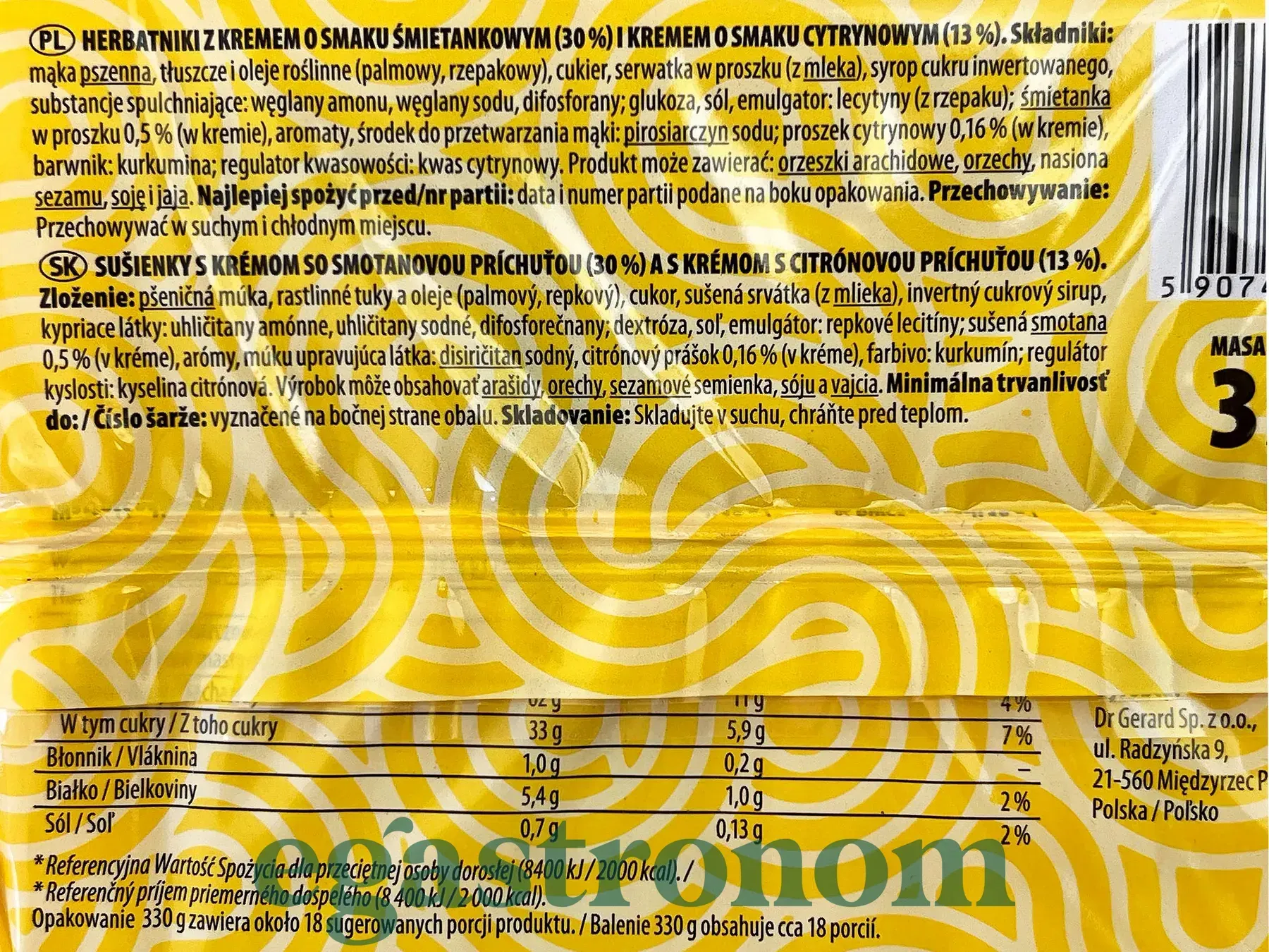 Печиво з лимонним смаком — це вражаюче поєднання сметанкового смаку та свіжості лимона, яке створює унікальний смаковий досвід. Лимонний акцент проявляється не тільки в ароматі, але й у легкій кислинці печива.