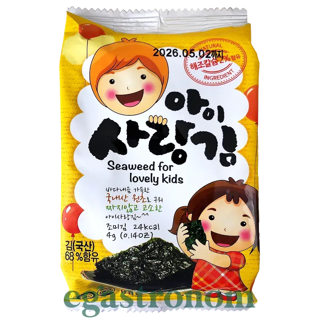 Чіпси з морських водоростей, спеціально розроблені для дітей. Вони мають м'який смак, ніжну текстуру та не містять гострих спецій, що робить їх ідеальним варіантом корисного перекусу. Кількість на палеті: 3024 шт. ТОП запити Підгузки купити Гострі соуси купити Сухі сніданки Сир Сир дорблю ціна Рослинна олія Горіхи купити київ