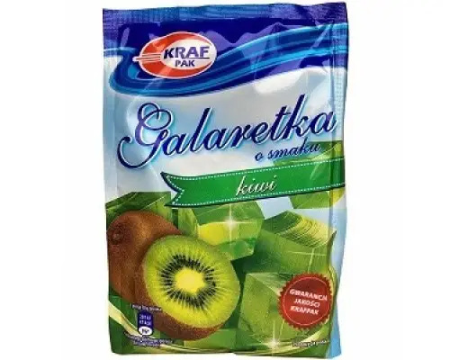 Желе Галеретка від Kraw Pak з смаком ківі - це ідеальний вибір для любителів низькокалорійних страв та тих, хто хоче задовольнити свої солодкі потреби, не надмірно навантажуючи свій організм. Це дієтичне желе містить тільки 18 ккал на 100 грам і має високу вміст пектину, який корисний для травлення.