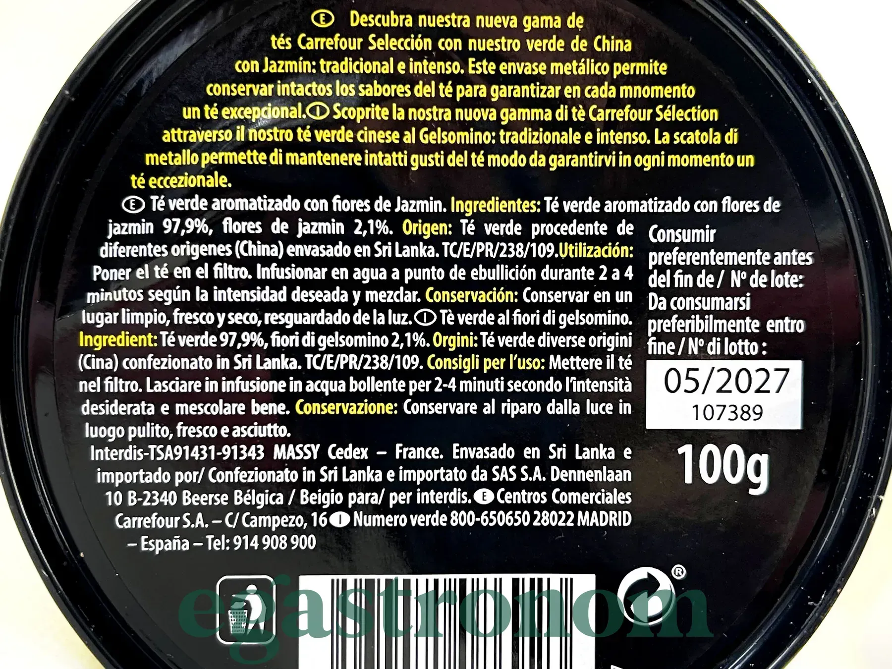 Чай зелений зі жасмином Керфо Селекшн Carrefour Selection jasmin ж/б 100g 8шт/ящ Чай зелений зі жасмином Керфо Селекшн Carrefour Selection jasmin ж/б 100g 8шт/ящ. Изображение №2