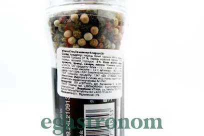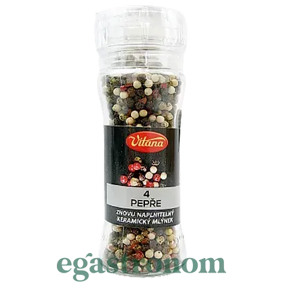 Чотири види перцю в скляній тарі з млинком – обов'язкова спеція на кожній кухні. Млинок у складі якого містяться: чорний, білий, зелений та рожевий перці. Кожен може оцінити переваги щойно меленої приправи – неймовірно насичений аромат та смак, який надасть яскрава суміш перців від Vitana. ТОП запити