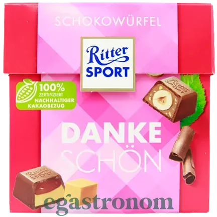 Цукерки Ріттер Спорт асорті (рож.) Ritter Spor danke schon 176g 4шт/ящ Цукерки Ріттер Спорт асорті (рож.) Ritter Spor danke schon 176g 4шт/ящ. Изображение №2 Цукерки Ріттер Спорт асорті (рож.) Ritter Spor danke schon 176g 4шт/ящ. Изображение №3