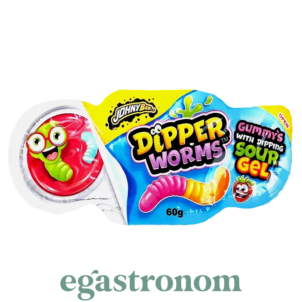 Цукерки желейні черв'яки з кислим гелем Джоні Бі Johny Bee 60g 12шт/ящ