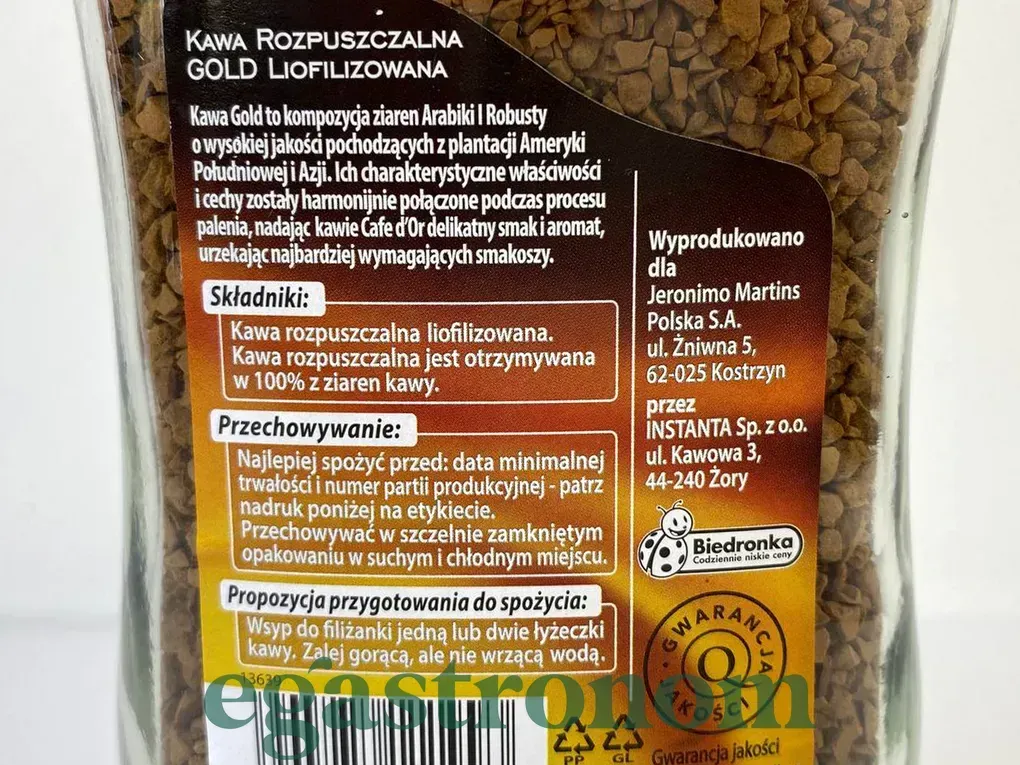 Надаємо Вашій увазі каву Cafe d'Or Gold! У виготовленні фахівці використовують високоякісну сировину, яка зможе надати каві темний відтінок, а також чудовий аромат і тонкий смак, яким зможе насолодитися кожен. Гранули зерен арабіки миттєво розчиняються в окропі, після чого напій готовий до вживання. Багатогранний запах, і колір темного шоколаду змусить Вас закохатися в цю каву, яким захочеться насолоджуватися щоранку. ТОП запити Сир з пліснявою купити Сухі сніданки Плавлений сир Сир козячий купити Пачка масла ціна Цукерки Ціни на чай