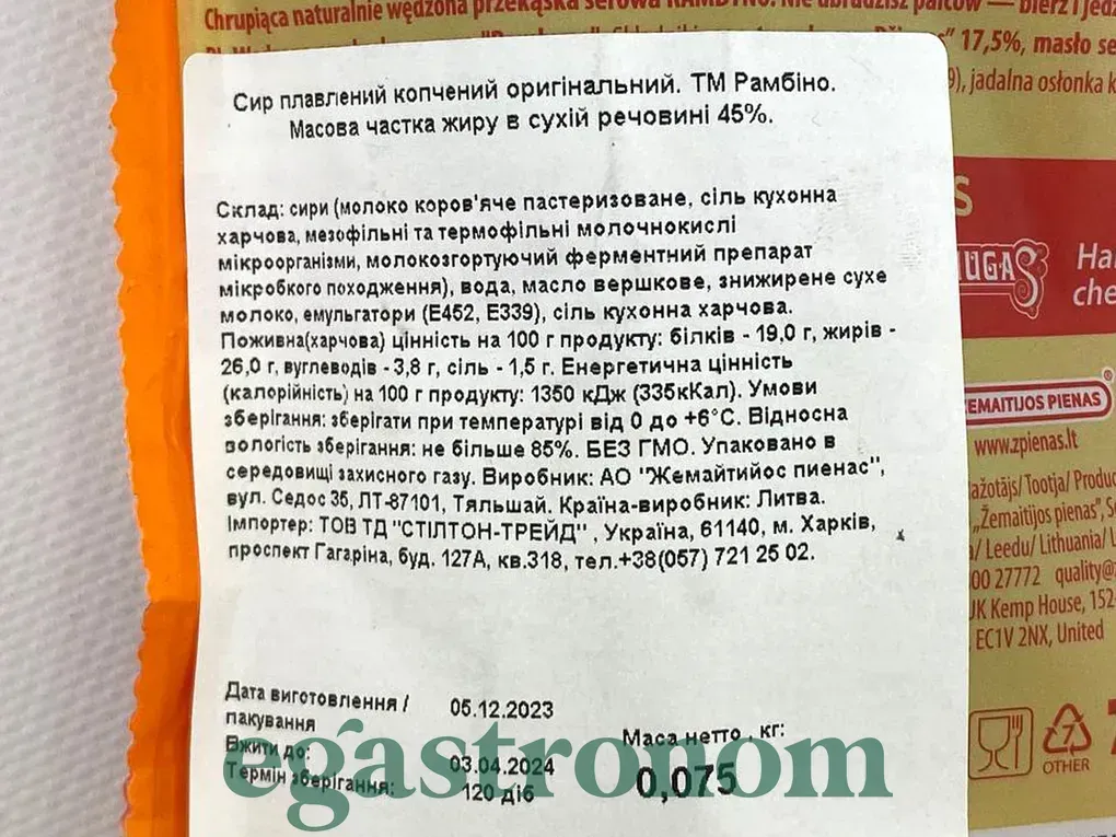Сир копчений традиційний Рамбіно Rambyno traditional 75g 10шт/ящ Сир копчений традиційний Рамбіно Rambyno traditional 75g 10шт/ящ. Изображение №2