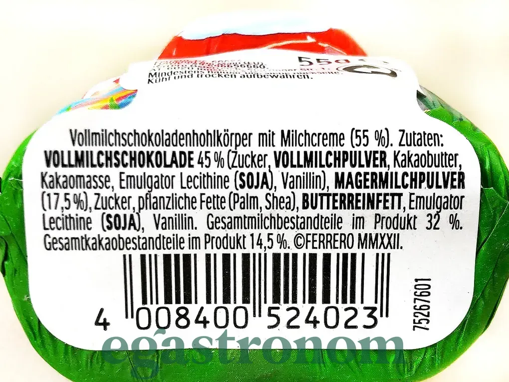 Шоколадний зайчик Kinder – це ніжний молочний шоколад із кремовою молочною начинкою, виготовлений спеціально до святкових подій, таких як Великдень. Має приємний солодкий смак, характерний для продукції Kinder, та м'яку текстуру, що тане в роті. Ідеально підходить для подарунка дітям або як частування для любителів молочного шоколаду. ТОП запити
