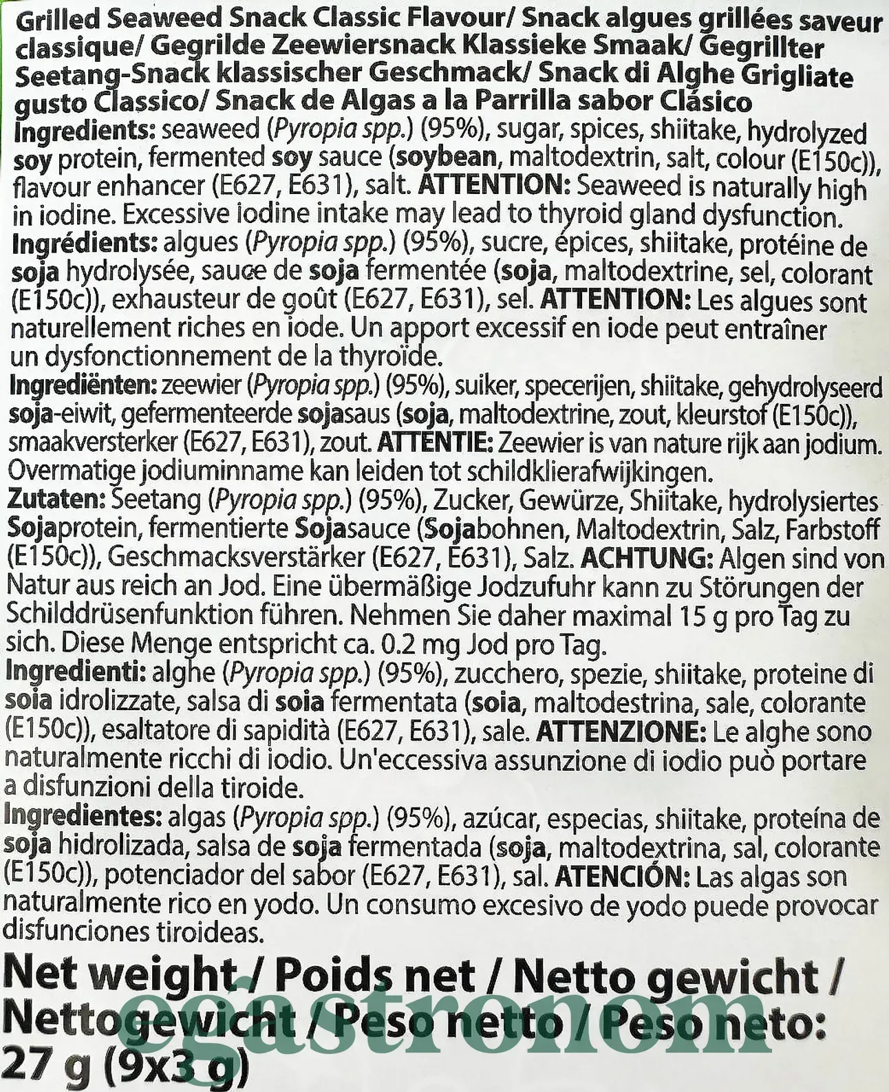 Чипси норі рол класичні Тао Кае Ной Tao Kae Noi Big Roll 3g 9шт/пач 12пач/ящ