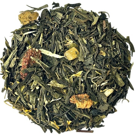 Ароматизований зелений чай "Анаберрі" з шматочками ананаса, суниці, пелюстками соняшника. Має освіжаючий аромат і благородний смак.
