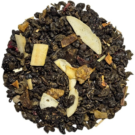 Вишуканий зелений чай із вишнею, журавлиною, алоє, кокосом, пелюстками троянди, м’ятою та лимонною травою. Має приємний фруктово-ягідний аромат із легкими коктейльними нотками. Смак гармонійний, із ніжною кислинкою та м’яким солодким післясмаком. Ідеальний для тих, хто цінує витончені поєднання натуральних інгредієнтів.