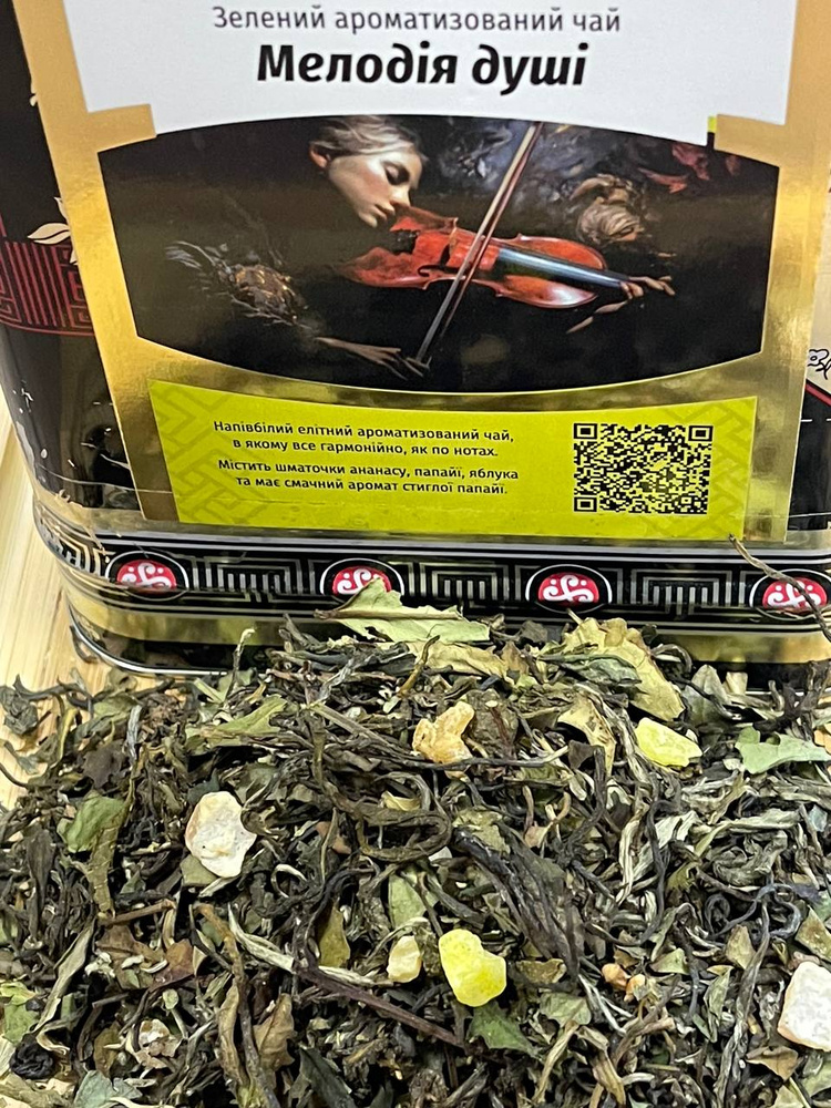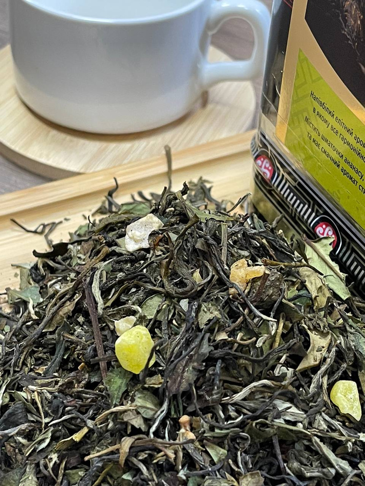 Напів-білий елітний ароматизований чай, в якому все гармонійно, як по нотах. Містить шматочки ананасу, папаї, яблука та має смачний аромат стиглої папаї.