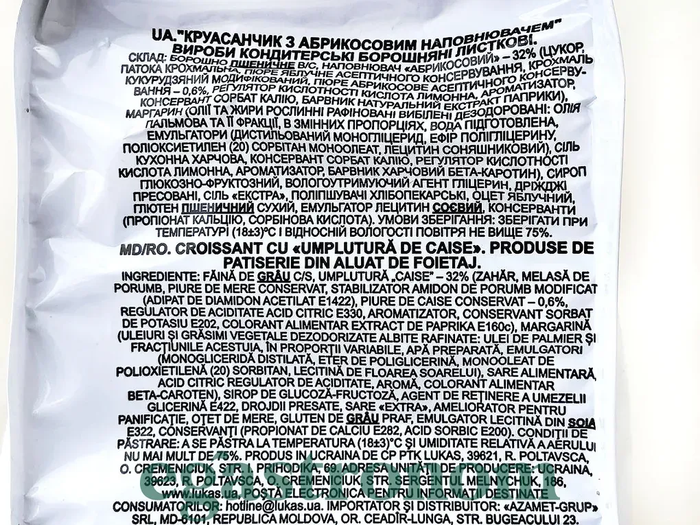 Круасани з абрикосом Лукас Lukas apricot 5*45g 10шт/ящ