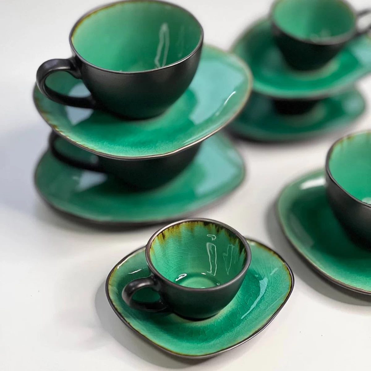 Набір 4 чашки + 4 блюдця «Зелена лагуна» чайний, 250 мл