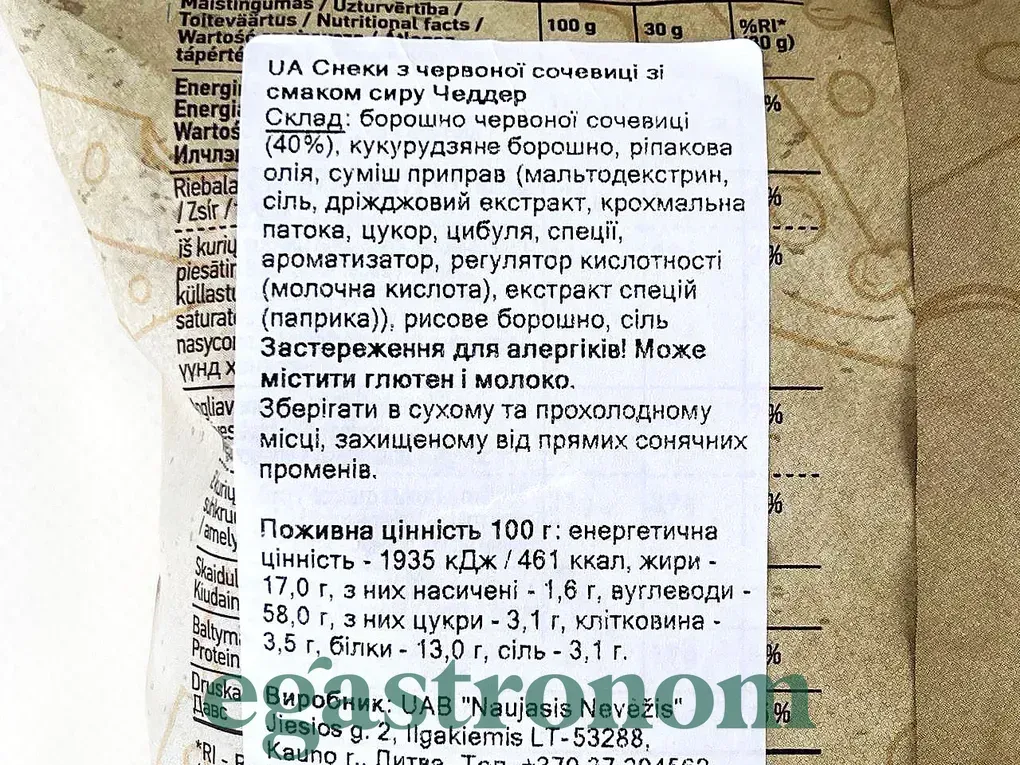 Чипси з сочевиці зі смаком сиру чедер Охо Оho cheddar cheese 100g 23шт/ящ