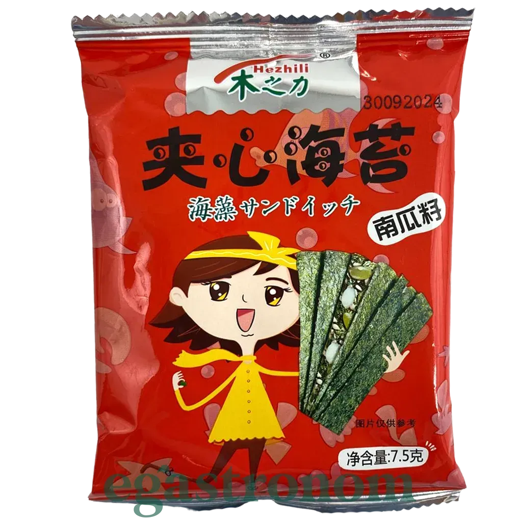 Чипси з норі та гарбузовим насінням Хезгілі Hezhili 7,5g 240шт/ящ