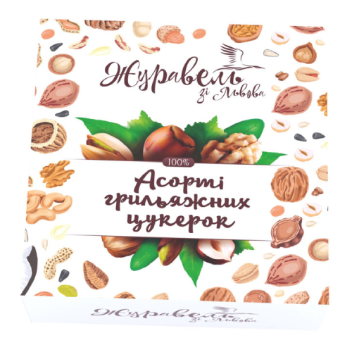 “Грильяж Грильяжний”, “Грильяж Фруктовий” , “Грильяж Бандерівський” ,“Горішок з насінням соняшника” ,“Горішок з чорносливом” , “Грушка з арахісом» , “Горішок з арахісом” , “Горішок з курагою” , “Родзинка з арахісом”