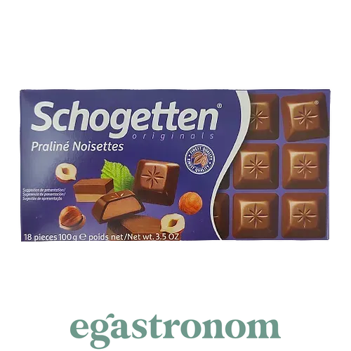Шоколад молочний з горіховим праліне Шогеттен Schogetten praline nosettes 100g 15шт/ящ