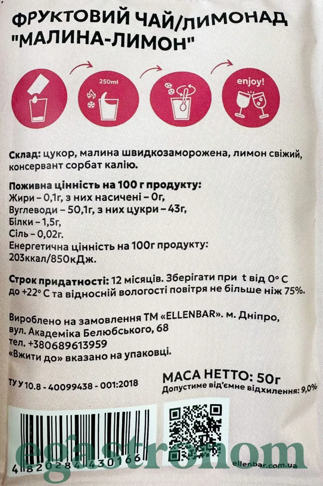 Чай концентрат малина та лимон Еленбар Ellenbar 50g 12шт/ящ