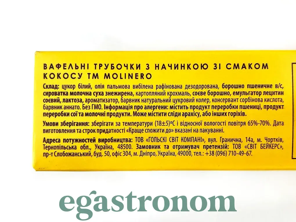 Вафельні трубочки зі смаком кокосу Молінеро Molinero 140g 32шт/ящ