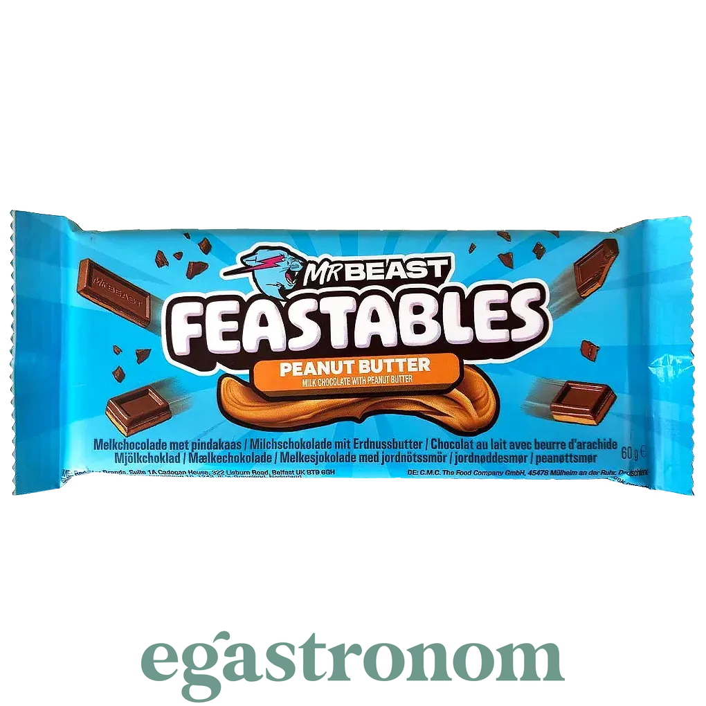 Шоколад з арахісовою пастою М. Біст Mr Beast feastables peanut butter 60g 10шт/ящ