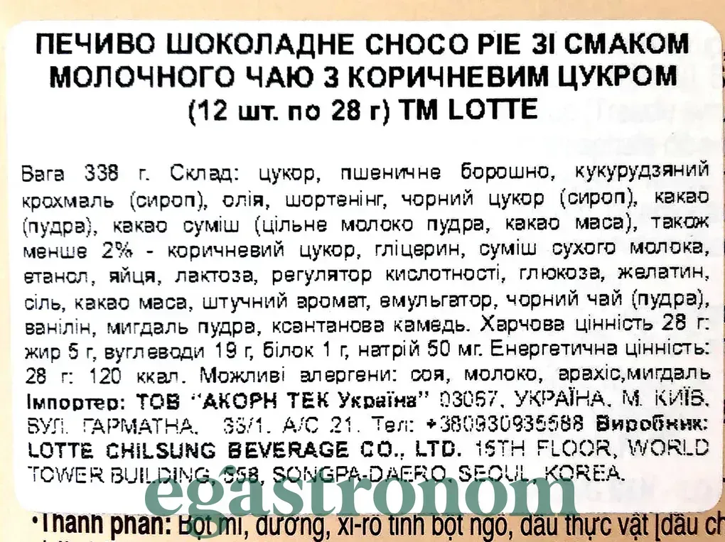 Печиво зі смаком молочного чаю з коричневим цукром Чоко Пай Choco Pie 336g (8*12,28g) 8пач/ящ Печиво зі смаком молочного чаю з коричневим цукром Чоко Пай Choco Pie 336g (8*12,28g) 8пач/ящ. Изображение №2