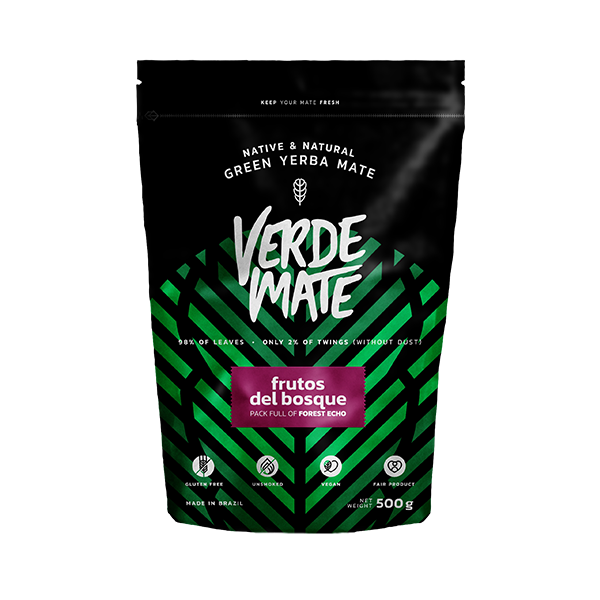 Verde Mate Frutos del Bosque – смачна й ароматна компуеста, скоштувавши яку один раз, ви полюбите її назавжди. Суха суміш мате Frutos del Bosque від Verde – це 100% натуральний продукт, у складі якого висушене грубого помелу добірне листя падуба парагвайського, вирощеного на екологічно чистій сімейній плантації в штаті Парана, мінімальна кількість паличок (не більше 2%) і цілий букет корисних органічних добавок - дрібні фракції плодів шипшини і горобини, листя ожини, смородини (порічки) та малини. Смакові якості: правильно приготований напій, завдяки особливому способу обробки сировини і вдало збалансованому складу суміші, має ідеальну гармонією смаку і запаху. Природна терпкість і легка гірчинка падуба парагвайського в цьому напої врівноважуються кисло-солодкою пряністю добавок, які не просто збагачують смакову й ароматичну гаму, а й надають напою особливого шарму й вишуканості, здатні порадувати навіть найвимогливіших любителів йєрба мате. Корисні властивості: всі корисні властивості падуба парагвайського в цій дивовижній компуесті в рази збільшуються завдяки складу добавок, що дозволили отримати не тільки відмінний природний енергостимулятор, що дуже щадяще діє на організм без неприємного ефекту від передозування кавою, а й продукт, який є ідеальним джерелом вітамінів A, C, B1, B2, B3, B5, E, амінокислот, кальцію і заліза, дозволяє стабілізувати обмін речовин, врівноважувати всі функції організму, має протизапальну дію і сприяє підвищенню імунітету.