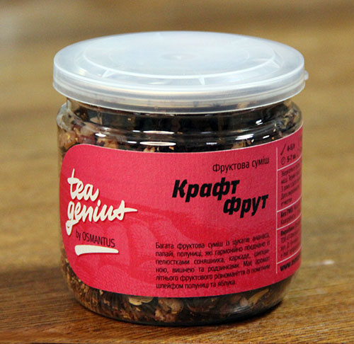 Вітамінна фруктова суміш на основі каркаде з цукатів ананаса, папайї, полуниці, пелюсток соняшника, шипшини, вишні та родзинки.