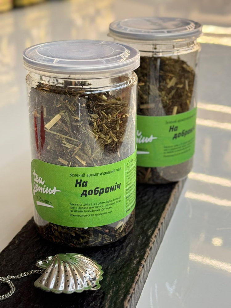 Унікальна суміш з 3-х різних видів зеленого чаю "На добраніч" з додаванням меліси, шипшини, бузини, мальви і шматочків фенхеля. Рекомендується як "вечірній" чай.