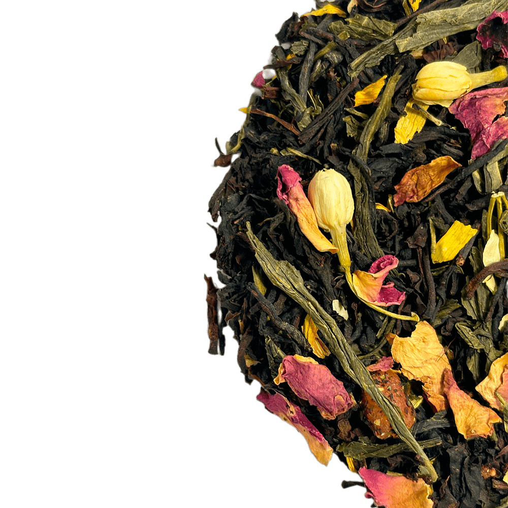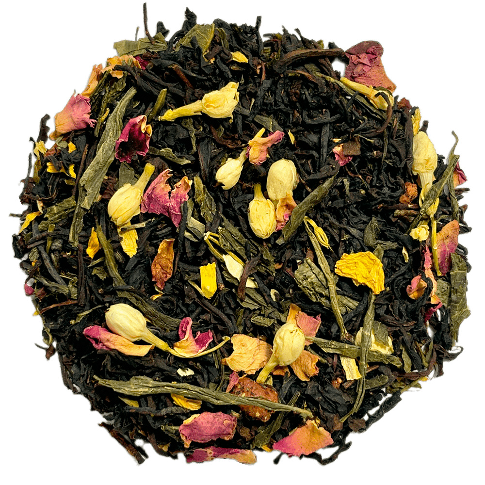 Композиційна суміш чорного та зеленого чаїв з шматочками полуниці, жасмином, пелюстками троянди та соняшника. Має витончений, свіжий аромат полуниці та насичений багатий смак.