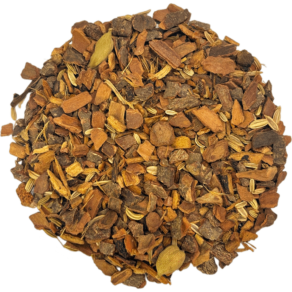 Трав'яна суміш з цедри апельсина, шматочків кориці, лакричника, цедри апельсина, фенхелю, кардамону. Кожен з його інгредієнтів позитивно впливає на тонус і стабільність нервової системи.