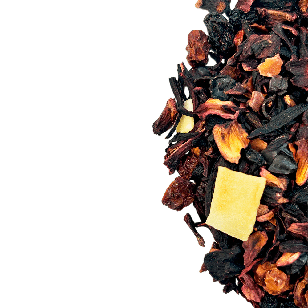 Фруктова суміш на основі каркаде зі шматочками ананаса, папайї, смаженого яблука, шипшини, бузини, кокосовими чіпсами. Має яскравий тропічний аромат екзотичних фруктів. Один із способів заварювання фруктових чаїв (сумішей): Порція: чайна ложка суміші на чашку 350 мл і ще одна додаткова - на чайник. Час заварювання: 5-6 хвилин при температурі 95 ° C. Особливі умови: заварювати один раз.