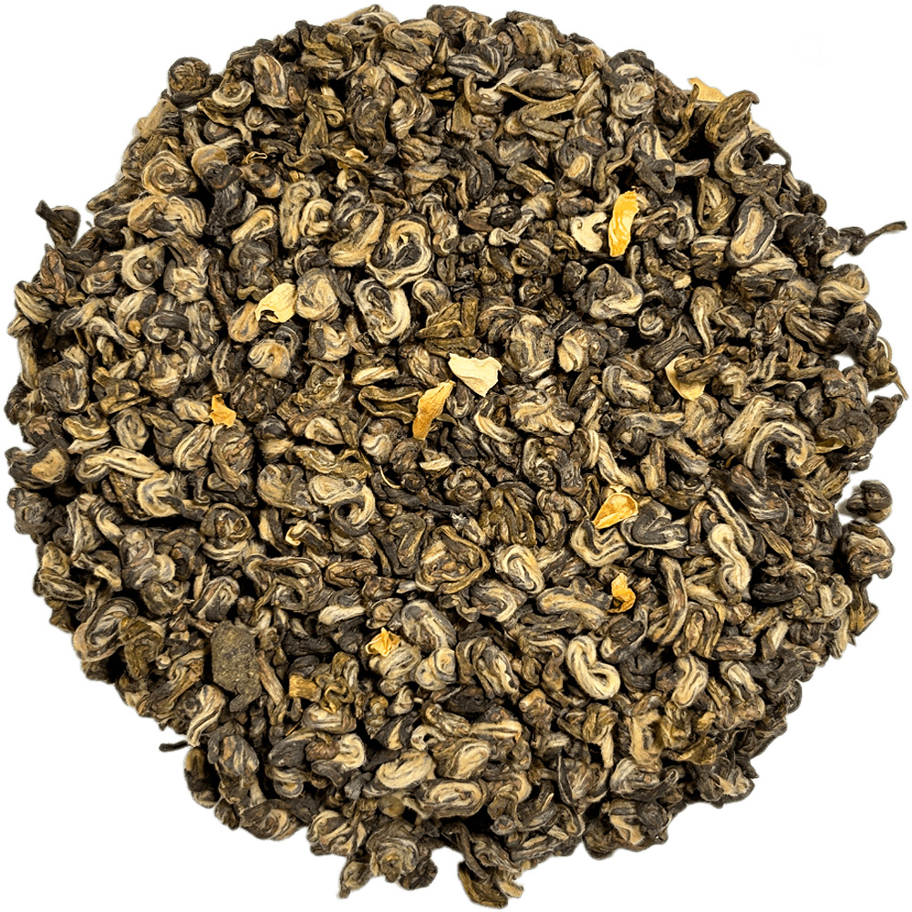 Добре відомий в Україні білий чай Бі Ло Чунь високої якості в завершеній жасминовій ароматизації. У китайському чаї “Жасминовий розсип” поєднуються свіжий аромат і м'який насичений смак.