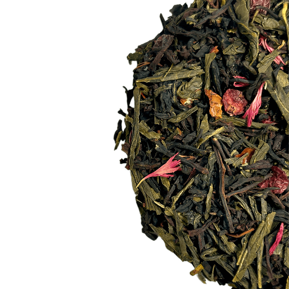 Композиційний чай, що містить зелений чай, чорний чай, султанський родзинки, шипшина, смородина, гібіскус, червоний волошка, натуральний ароматизатор. Багатий вітамінами і мікроелементи і має приємний тонізуючий смак.