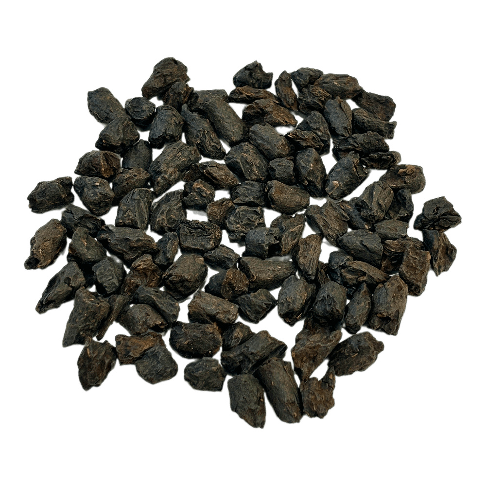 Формуються чайні камені в процесі тривалої глибокої ферментації високоякісного листя та бруньок, зібраних з кращих сортів чайних дерев. Як добавка виступає екстракт жасмину.