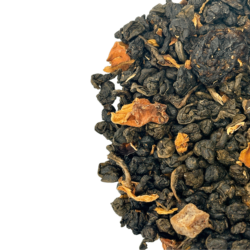 Зелений чай із пелюстками троянди та соняшника, цукатами манго та папайї, чилійським ізюмом та яскравим фруктово-ягідним ароматом із помітними нотами журавлини, яблука та ананаса.